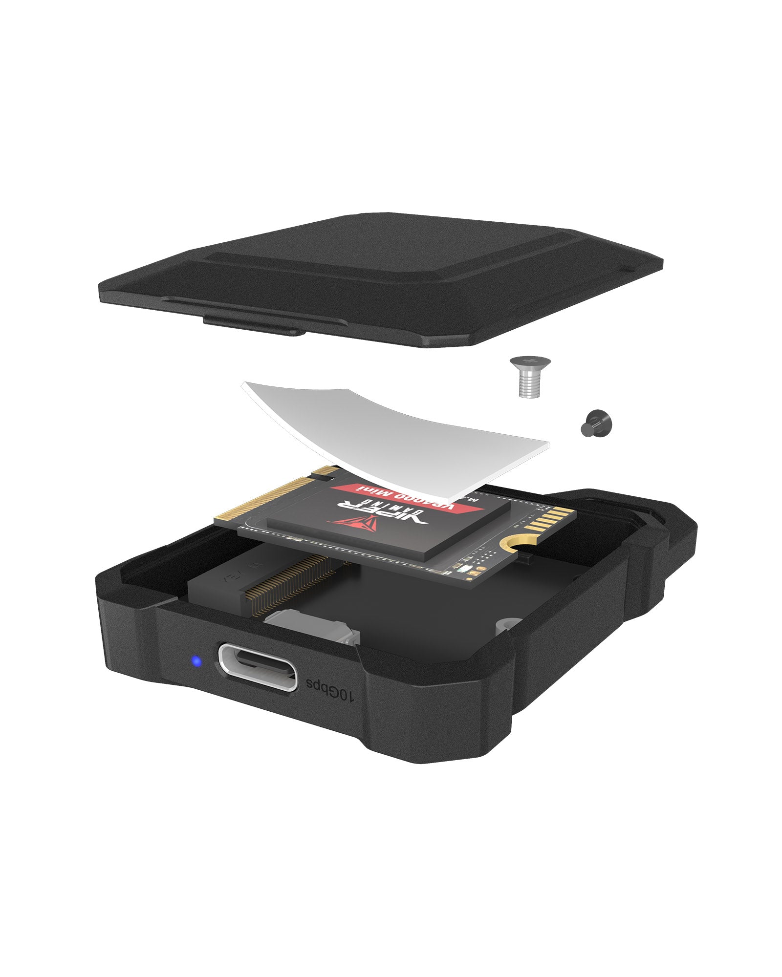 Crafted from zinc alloy and securely screw-fastened, the enclosure provides long-lasting durability and impact resistance. It protects your M.2 SSD so you can carry your data safely wherever you go.