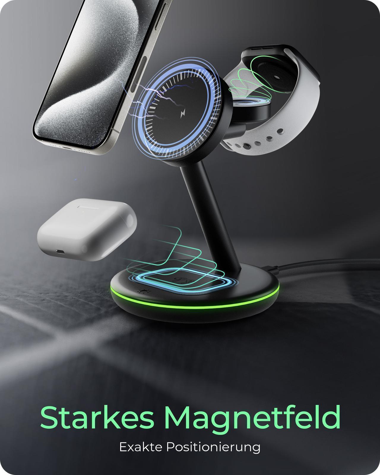 3-in-1 Kabellose Ladestation für Smartphone, Smartwatch und Kopfhörer