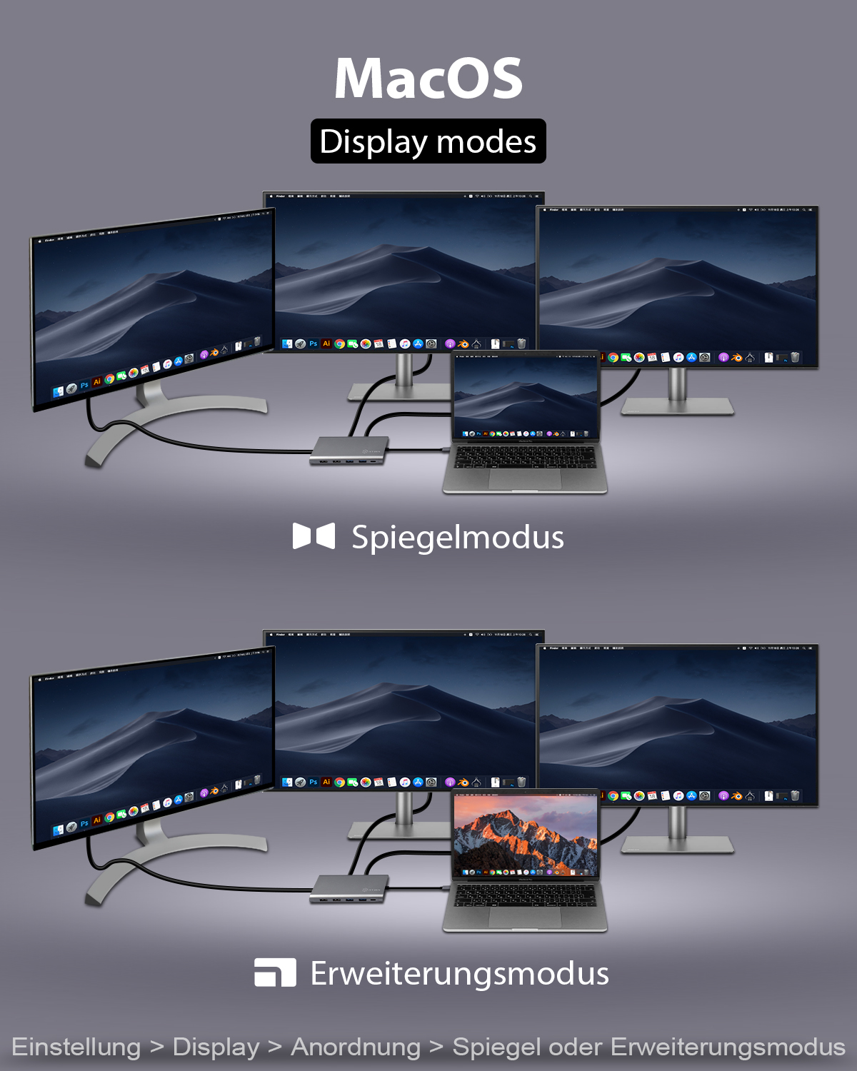 Maximale Kompatibilität: Die Dockingstation unterstützt Windows und macOS. Sie ist die perfekte Erweiterung für MacBook, iPad Pro, Huawei MateBook X, Dell XPS 13, ThinkPad, Chromebook und viele weitere Geräte.
