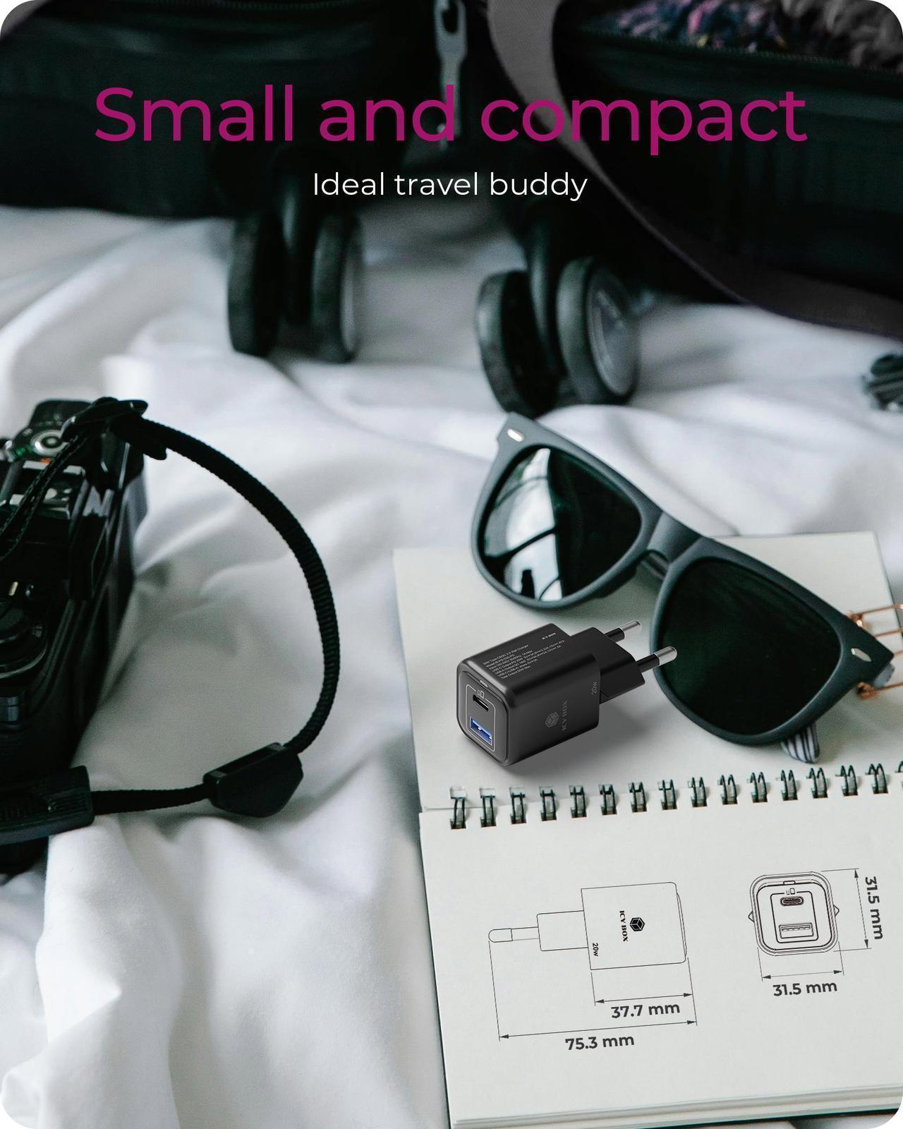 Cargador rápido USB de 2 puertos y 20 W para dispositivos móviles