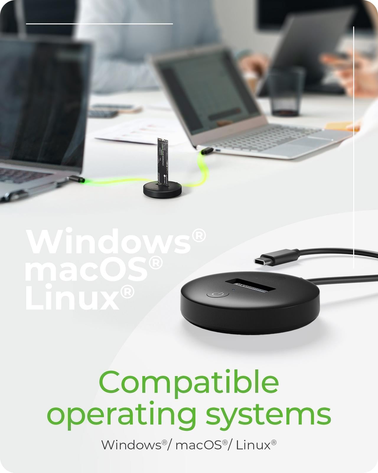 SSD M.2 NVMe y SATA: El IB-1610MCD-C31 está diseñado para ofrecer velocidad y compatibilidad. Admite SSD NVMe y SATA M.2 con velocidades de transferencia de hasta 10 Gbps. Es compatible con tamaños M.2 estándar, como 2230, 2242, 2260, 2280 y 22110. Esto lo convierte en la opción ideal para acceder o clonar sus unidades.