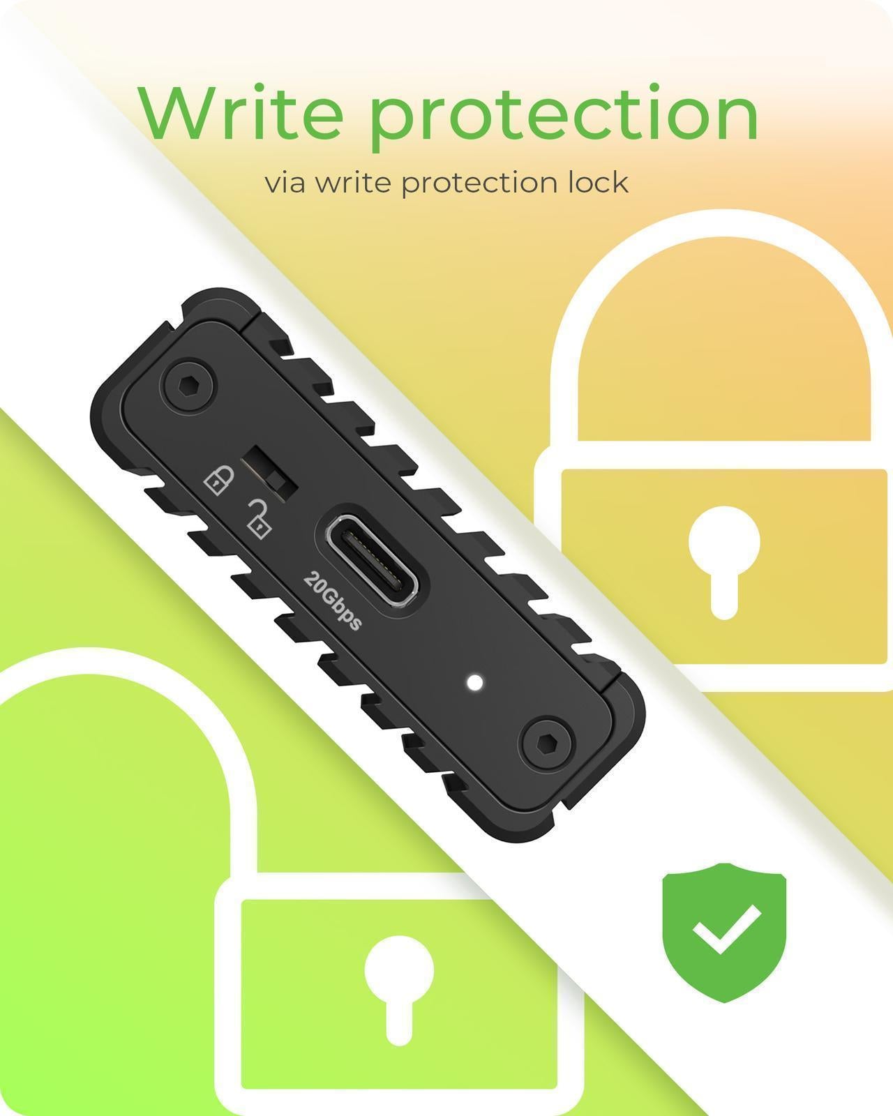 Protección contra escritura: incluye una función de protección contra escritura para una mayor seguridad de los datos.