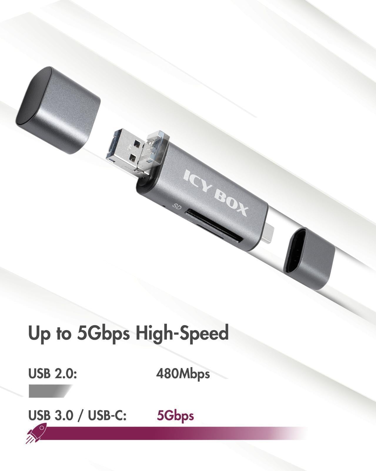 Lector de tarjetas de 2 puertos con USB Tipo-C® e interfaz dual Tipo-A / Tipo Micro-B